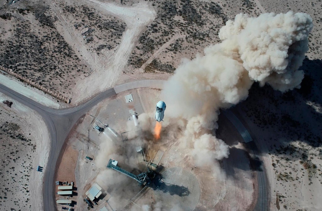 Bezos created Blue Origin in 2000, a move that he said prompted his high school girlfriend to observe, “Jeff started Amazon just to get enough money to do Blue Origin — and I can’t prove her wrong.” He has said he finances the rocket company by selling $1 billion in Amazon stock a year. Bezos caught the space bug at age 5 while watching Neil Armstrong and Buzz Aldrin’s moon landing on July, 20, 1969. He chose the 52nd anniversary for his own launch. Enamored by space history, Bezos named his New Shepard rocket after Alan Shepard, the first American in space, and his bigger, still-in-development New Glenn rocket after John Glenn, the first American in orbit. The 57-year-old Bezos — who also owns The Washington Post — stepped down as Amazon’s CEO earlier this month and last week donated $200 million to the Smithsonian Institution to renovate its National Air and Space Museum and launch an education center. “To see the Earth from space, it changes you. It changes your relationship with this planet, with humanity,” he said. “It’s a thing I’ve wanted to do all my life.”