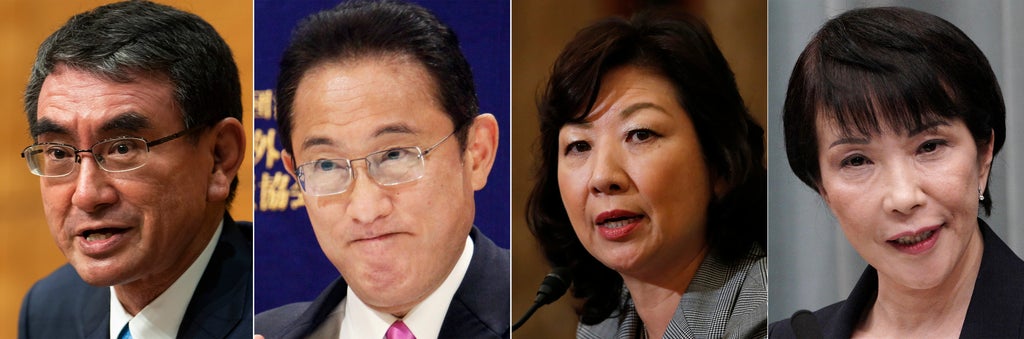 Two men and, unusually for Japan, two women are competing in the Sept. 29 vote to replace outgoing Prime Minister Yoshihide Suga. Their policies focus on anti-coronavirus measures, an economy hobbled by the pandemic and how to deal with, from Tokyo’s perspective, China’s increasingly menacing role in regional affairs.
