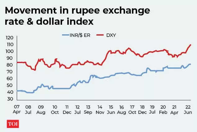 Any Appreciation of the dollar leads to depreciation of the rupee/dollar exchange rate. "The correlation between the two is high at 0.86. Regression of rupee exchange rate on dollar index (DXY) from Apr-07 to Jul-22 reveals that 1% change in DXY (or appreciation of dollar) leads to 1.13% change in rupee exchange rate (depreciation of the rupee)," said the SBI study.