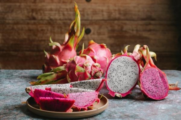 Also known as pitaya, this exotic fruit has a vibrant pink or yellow skin with white or red flesh speckled with tiny black seeds. It has a mild, sweet flavor reminiscent of a mix between a kiwi and a pear.