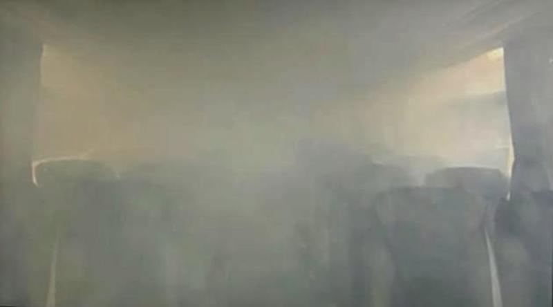 When an air conditioner was turned on, the smoke almost completely disappeared from the bus in about three minutes.