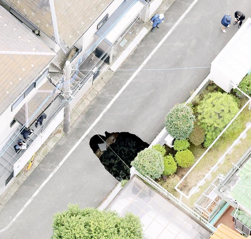 The hole resulting from the Oct. 18 cave-in was over 5 meters long and about 3 meters wide. In the investigations that followed, an additional two cavities of about 30 meters in length were also discovered near the cave-in site.