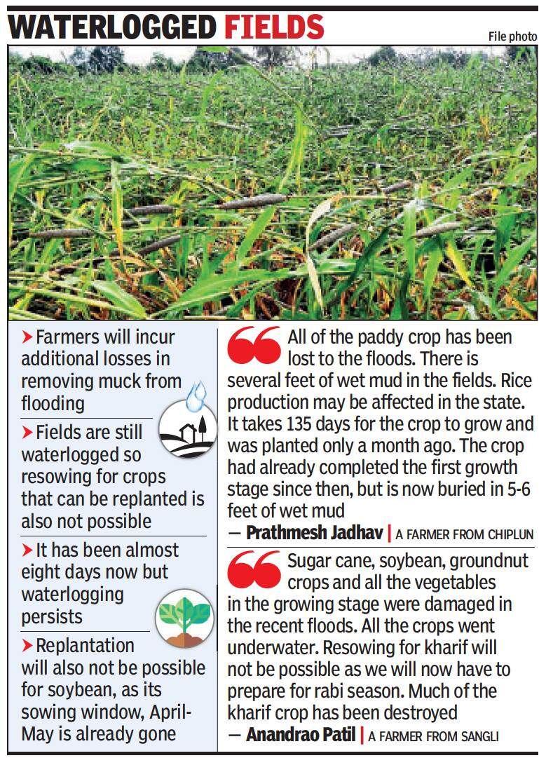“Maximum damage was reported to sugar cane crops in Kolhapur and Sangli, soybean in Vidarbha and paddy in Konkan, apart from all vegetables in fields. Farmers with fields in low-lying areas and those next to the riverside and nullahs especially incurred heavy damage as waterlogging and muck from flooding still persists.” he added.