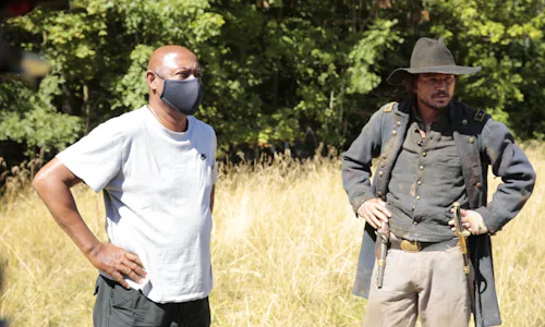 But beyond setting, Peck needs to convince the audience not only that temporally and geographically disparate instances of genocide are linked by a common dehumanizing mindset, but that they are also typified by unspeakable violence. In particular, where Hartnett’s time-traveling overseer is concerned, these reenactments of real brutality to Africans and Native Americans take on a graphic, self-satisfied repetitiveness. Here is Hartnett shooting a woman point-blank in the head. Here is Hartnett scalping a murdered Native American. Here is Hartnett forcing a young African boy to cut the hand off an unruly member of his own community. Here is Hartnett taking a bath after hanging more Africans. Here is Hartnett lobotomizing an elderly Black man. Such scenes reach into the speculative as the series goes on. In one, Hartnett and a Black preacher stumble upon a group of enslaved white children being driven and beaten by African handlers. In another, Hartnett washes himself in a river and gazes into the distance, watching footage seemingly taken from the Charlottesville Unite the Right rally as it passes him by. One might describe these scenes as unflinching, searing, impressionistic, but they function on the misguided idea that shock and disgust are productive reactions. Any truth to their origin is obscured by how deliberately these moments are constructed, deliberation that becomes tiresome and confusing.