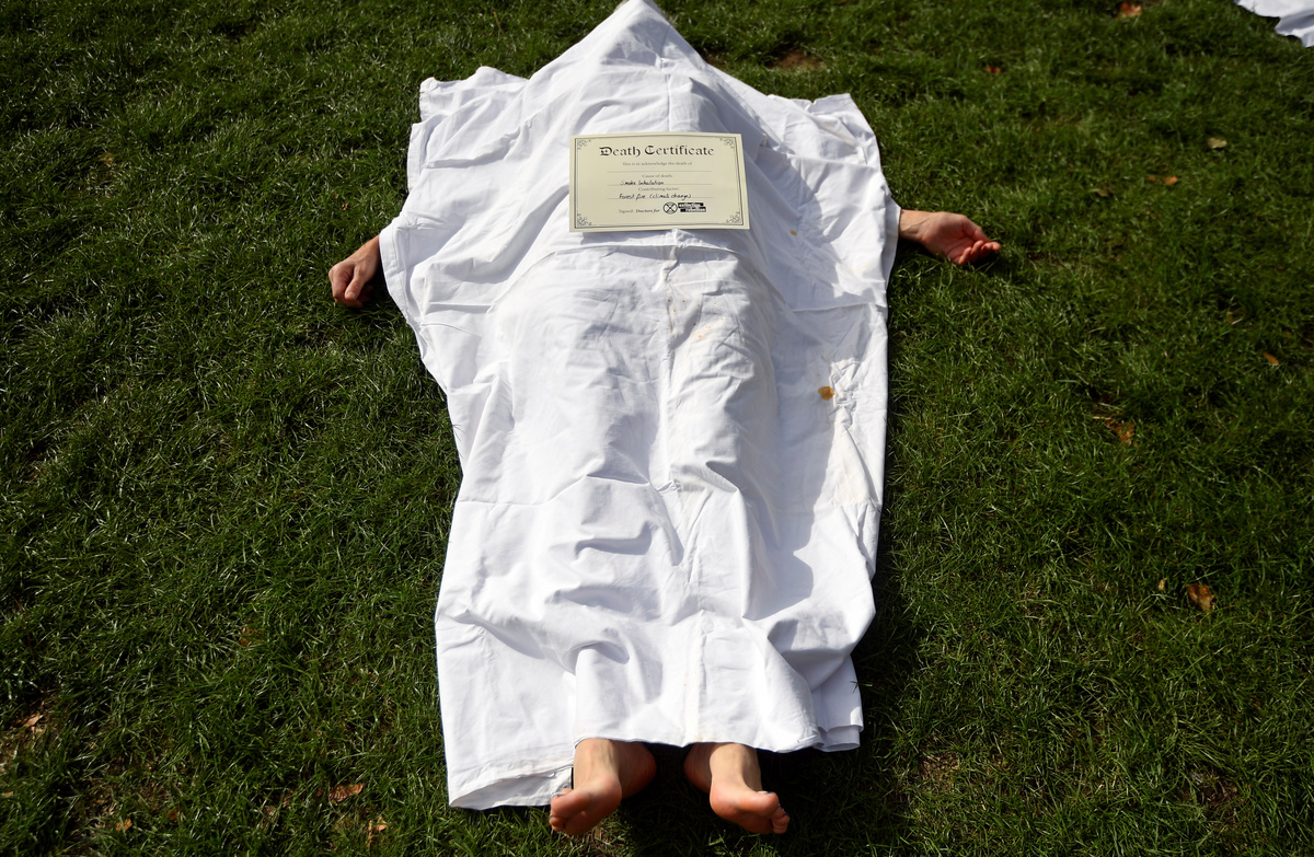 "Today we are marking the deaths of all those people who have died and will continue to die as a result of climate change and ecocide," an organizer said.