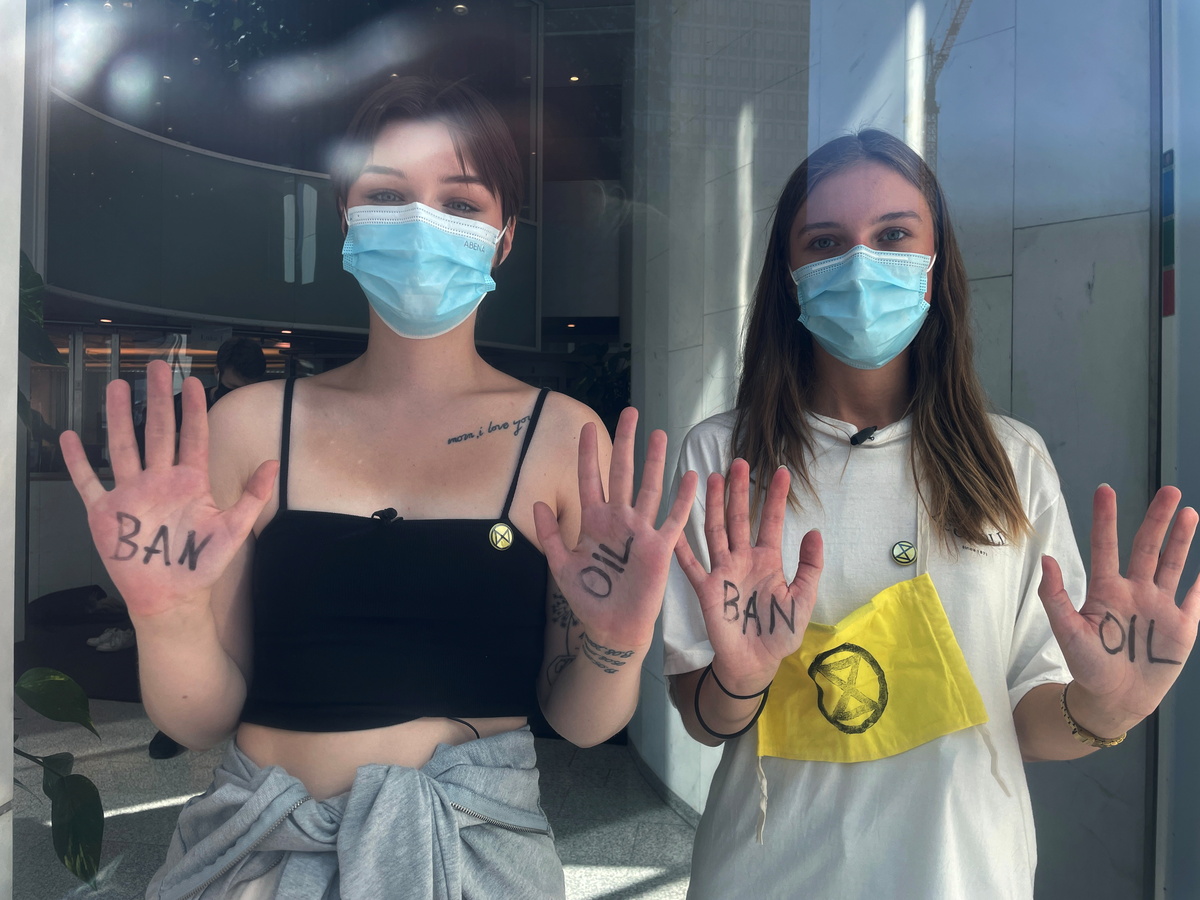 Around 17 campaigners, some with "Ban oil" written on their palms, occupied the ministry's reception, while dozens of others demonstrated outside, stopping people getting into the building in central Oslo.