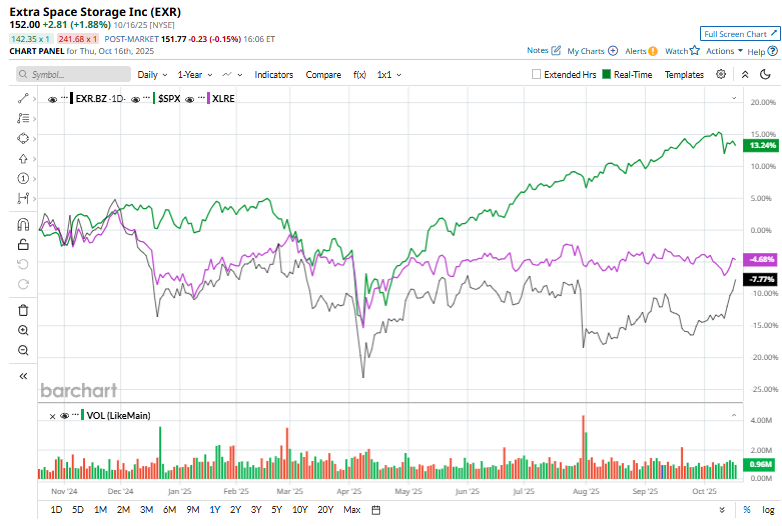 EXR stock has faced challenges over the past year, with shares down 3.1%, underperforming the S&P 500 Index’s ($SPX) 13.5% gains and the Real Estate Select Sector SPDR Fund’s (XLRE) 6.6% drop over the same time frame.
