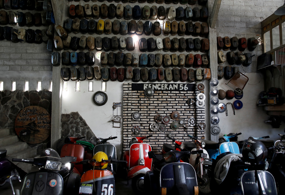 Vespas are displayed in a Vespa club and workshop in Kediri, East Java, Indonesia, August 2, 2018. REUTERS/Darren Whiteside