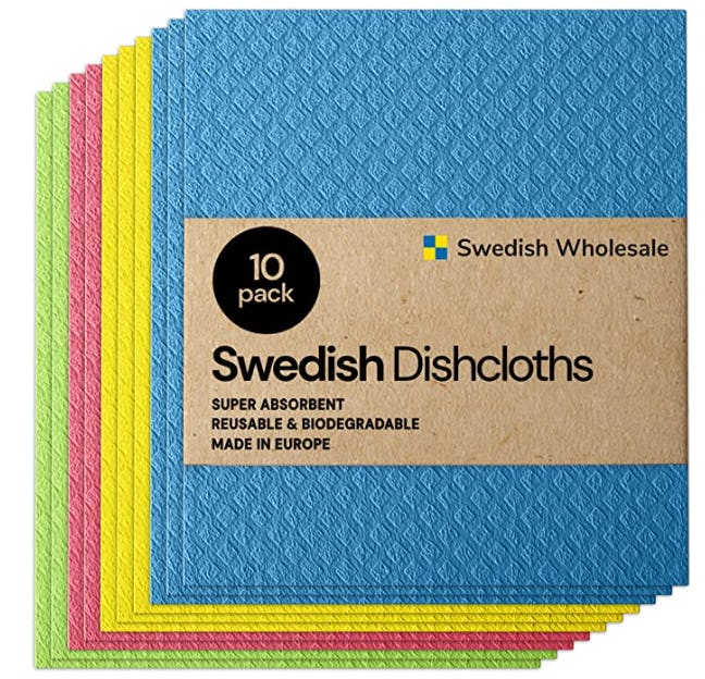 These Swedish dishcloths are a texture that is somewhere between a sponge and a cotton cloth because they are a blend of cellulose and cotton. The result is the perfect tool for wiping surfaces, mopping up spills, and washing dishes. They are foldable, wring out dry, and hold a ton of liquid, making them the perfect, nondisposable (you can wash and reuse them) alternative for paper towels.