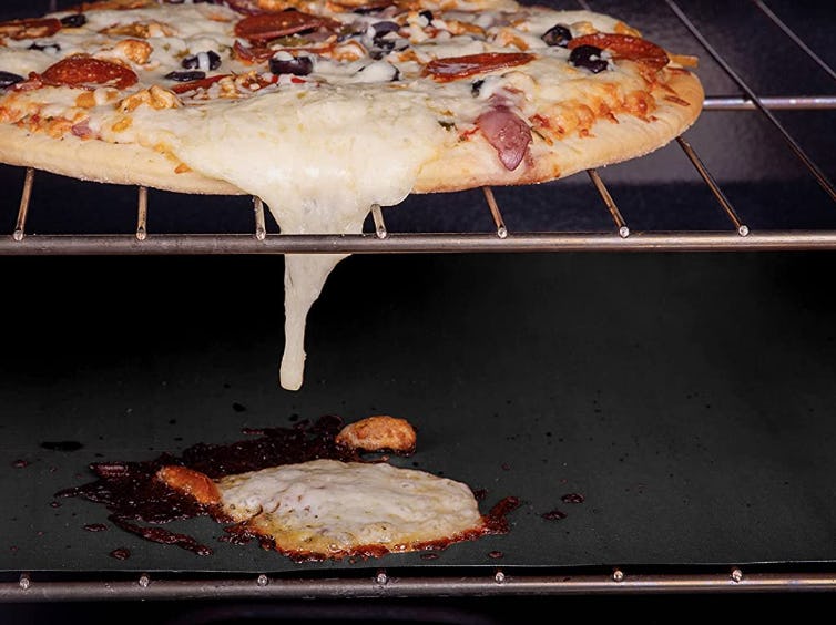 Before you put that pizza creation, roast, or potentially drippy casserole into the oven, put this nonstick oven protector mat on the rack below it. When your dish bubbles over, this will catch the mess so you don’t have to spend hours cleaning your oven. You can cut it to fit perfectly and it works in toaster ovens and air fryers, too.