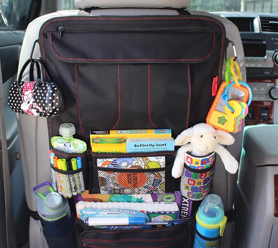 One reviewer said: “We purchased this organizer for a recent road trip, and it was extremely helpful! Our daughter and our dog shared the back seat, and she was able to put her water bottle, the dog's water bottle, hand wipes, snacks, dog toys, kid activities, souvenirs ... all sorts of stuff. It helped the actual seat to stay tidy because she had places to put everything.”