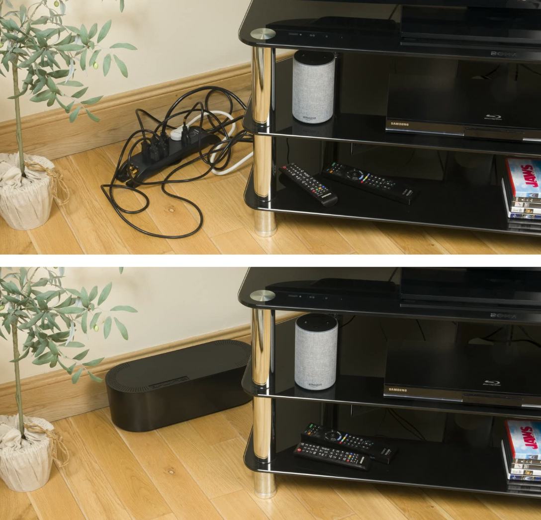 Transform that messy power strip with wires snaking away from it into a tidy package with this cable management box. Just drop the power strip into the box, guide the wires through the channels in the back, and snap on the lid. That mess is gone. It makes things safer, too, since pets and children won’t be tempted to play with it.