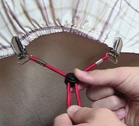 Do you have to remake the bed every morning because the bottom sheet slips off in the night? There is a quick and easy fix for that. These bed sheet holders clip to the sheets and go under the mattress corner to secure the sheets so you can toss and turn as much as you like and the bottom sheet will not slip off. A clever cord lock lets you tighten the straps after you clip them on so installation is easy.