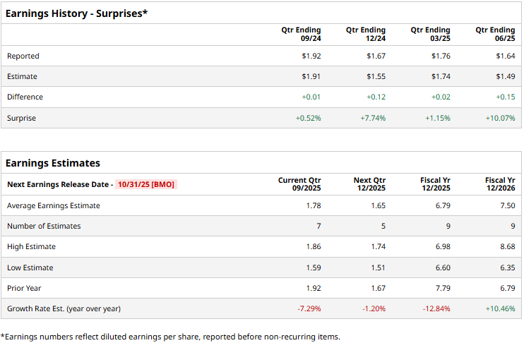 The energy giant is set to release its third-quarter results before the markets open on Friday, Oct. 31. Ahead of the event, analysts expect Exxon to deliver a non-GAAP profit of $1.78 per share, down nearly 7.3% from $1.92 per share reported in the year-ago quarter. On a positive note, the company has surpassed the Street’s bottom-line estimates in each of the past four quarters.