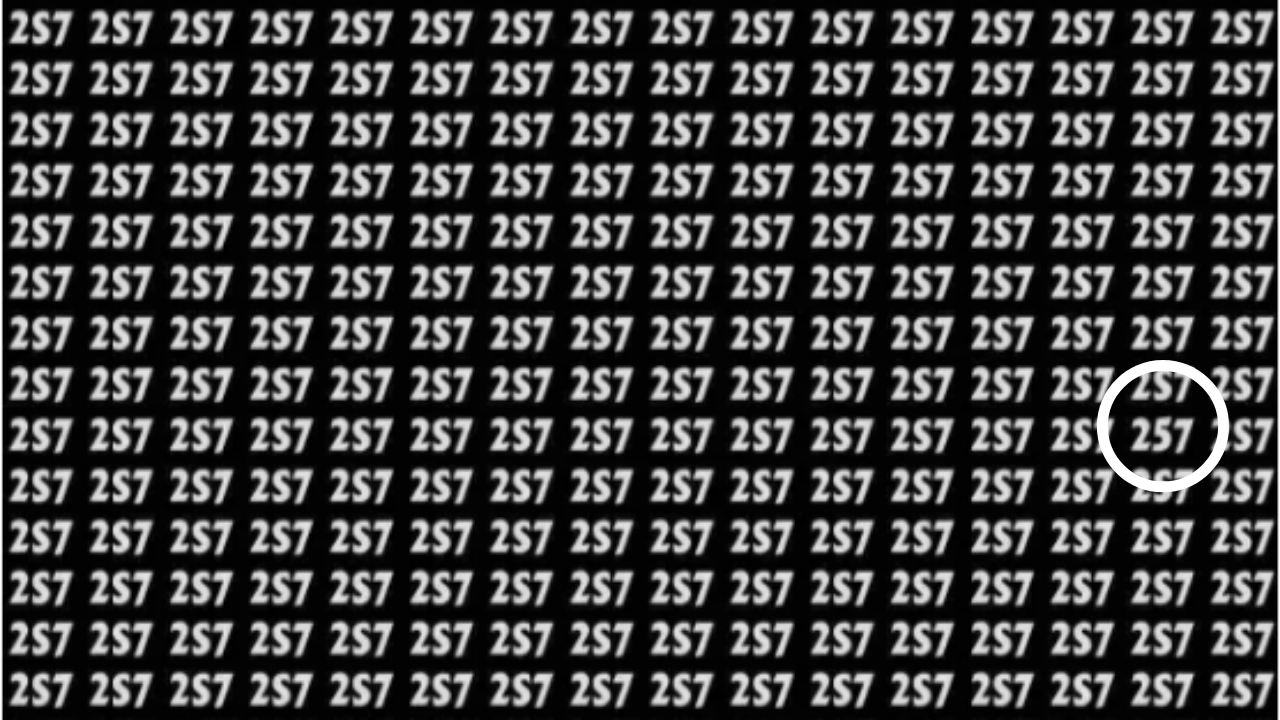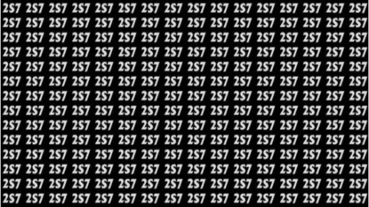 Do you think you have sharp eyes? This optical illusion test can check your visual skills. Shared in this image is a black-and-white grid with the term '2S7' in all rows and columns, well, almost all. There is one number hiding in this grid that reads 257 and not 2S7. Your task is to find that 257 in just 10 seconds. Can you do it? Let's find out. Make sure you do not check the answer below before giving this test a genuine shot. You can also share it with your friends, family or colleagues to take this challenge together and see who has better visual skills. Now, are you ready? Here begins the countdown. All the best!