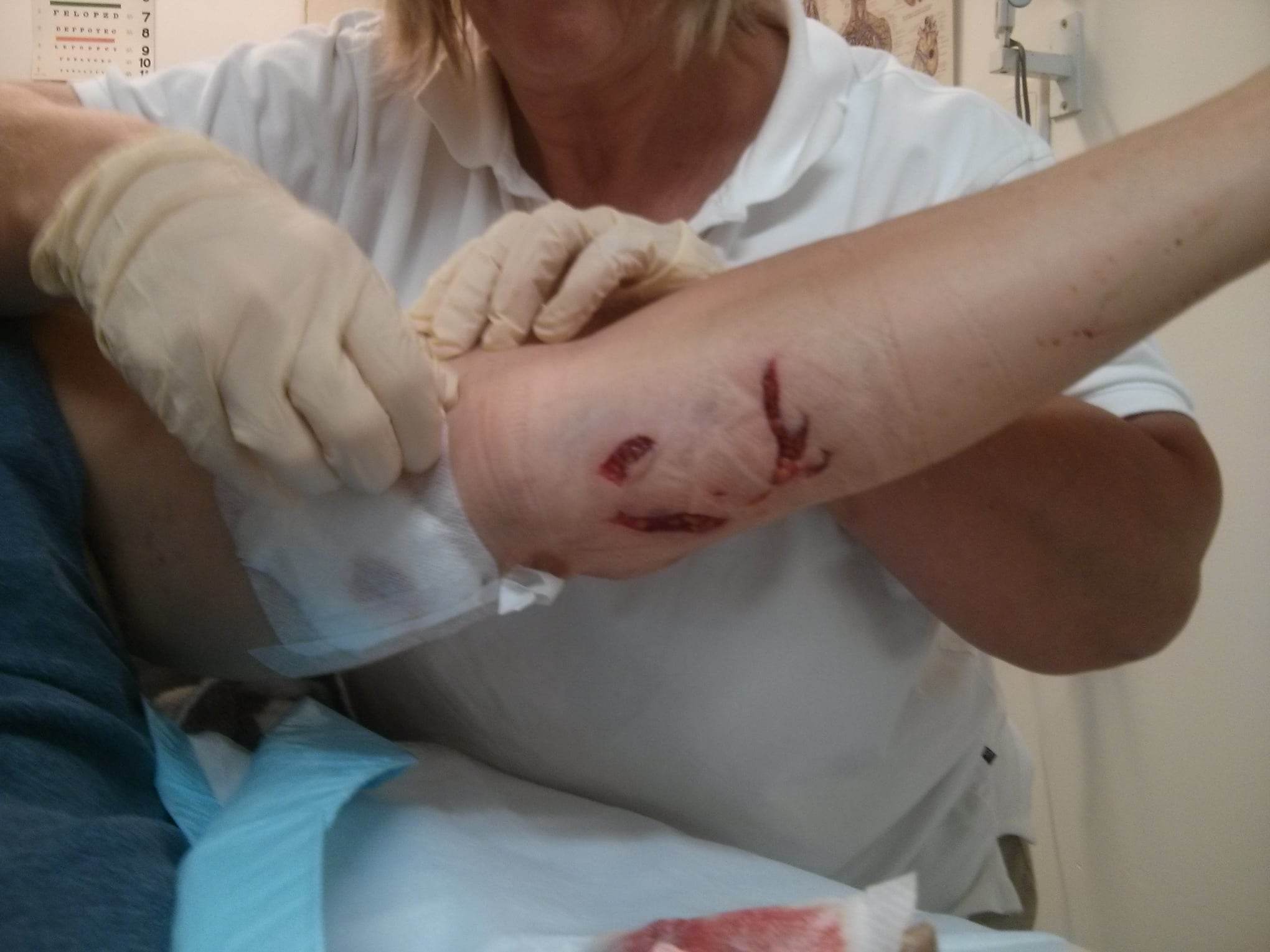 After getting out of the water Mr Curwen walked up to the bar. One of the staff was a lifeguard and wrapped up his wounds.