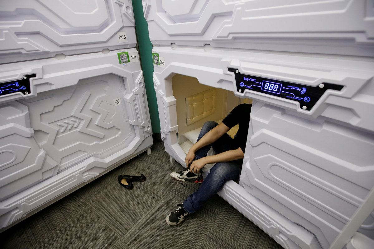 Eyeing sleepy office workers, China's 'sharing economy' opens nap capsules