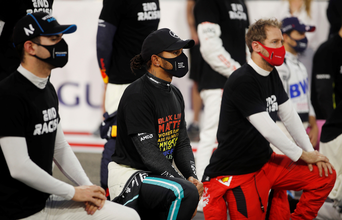 Seven times world champion Lewis Hamilton, the sport's only Black driver, took a knee before races last year while wearing a Black Lives Matter mask or T-shirt but some of the other drivers remained standing.