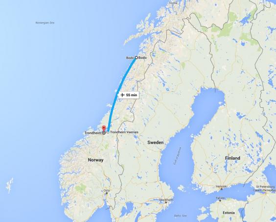 Within 40 minutes of the call being received, the medical equipment had been delivered to the hospital in Bodø.