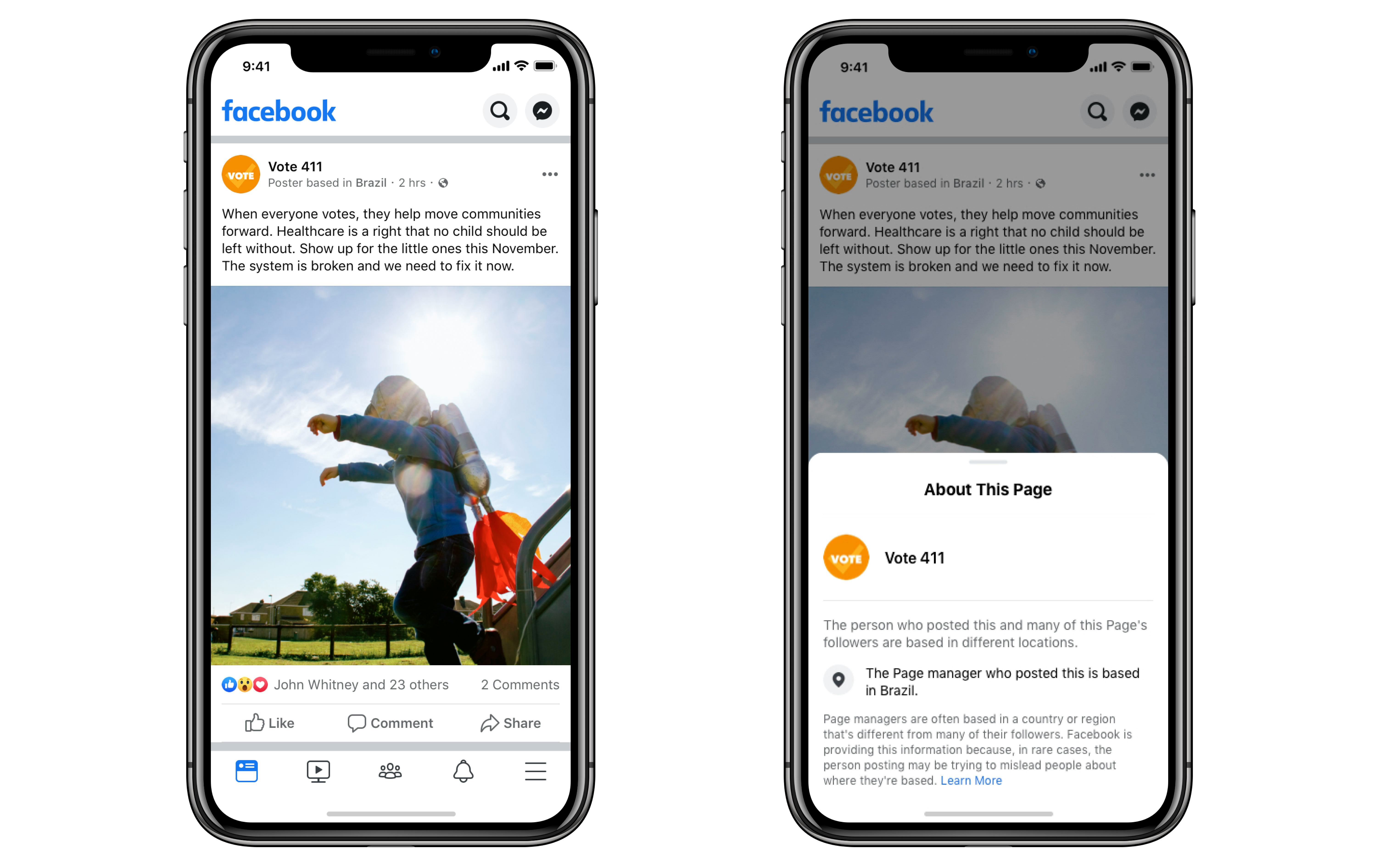 Right now the feature is being piloted in the U.S., and it’s first rolling out for accounts based outside U.S. borders with large American followings. Facebook specifically mentions that this feature is meant to combat political misinformation. It’s part of a larger series of updates that hope to “protect” the 2020 U.S. elections.