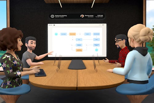 To understand Workrooms, think of it like a souped-up Zoom call. Put on an Oculus Quest 2 headset (friendly reminder that Facebook owns Oculus) and you are transported to a virtual office, where you will be able to see avatar versions of your office mates — except they are all legless, for some reason. Built into the room are some features for communicating and working together: Drawing pads and white boards let workers collaborate in the shared space, and workers can use a virtual projector to share slideshows or stream video for the room. Workrooms also tries to make things feel a bit more immersive than your standard video conference: Arm and hand tracking create more realistic body movements and spatial audio technology makes it sound like a voice is coming directly from whoever is speaking.