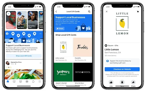 Facebook has announced a new set of features designed to help businesses impacted by the coronavirus pandemic, including a gift card registry. A prompt to buy digital gift cards will now appear on businesses' News Feeds in select regions. Some users in the U.S. will begin seeing it today, with a broader rollout throughout the nation planned for the following weeks.
