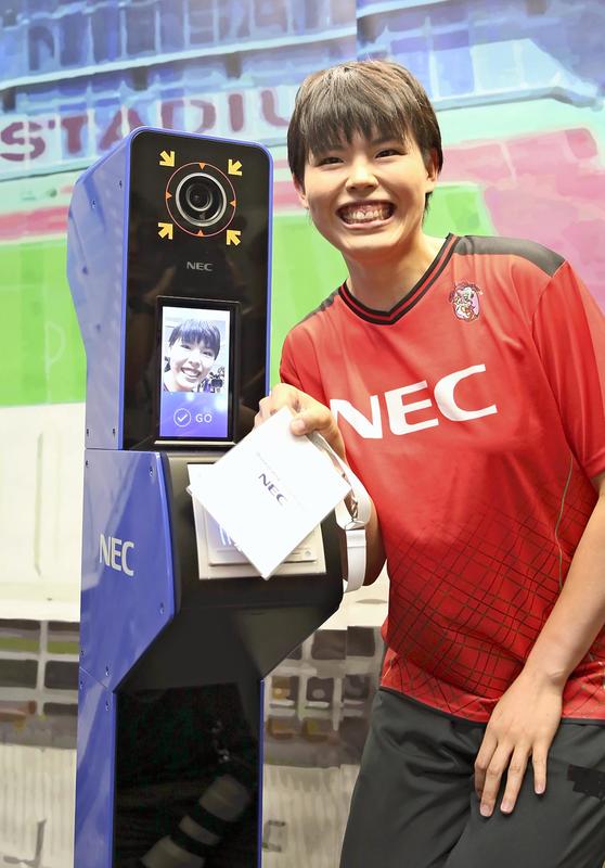 The facial recognition system developed by NEC automatically cross-checks faces seen in cameras and information about facial photos that are registered in advance as people related to the Games hold up their ID cards at entrance gates.