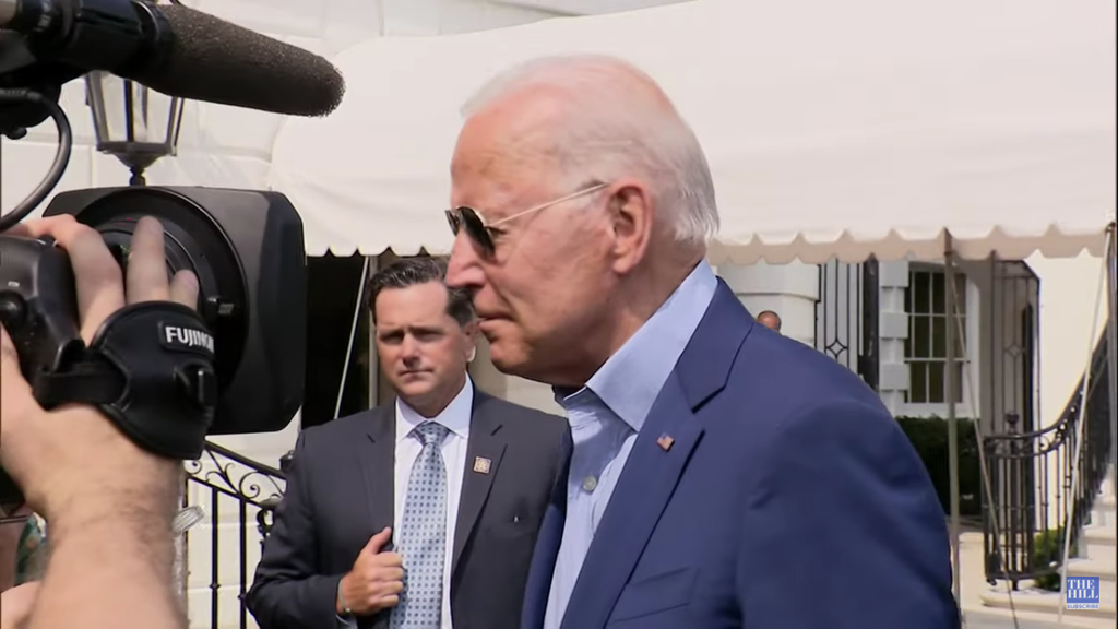 Biden, who had been unable to hear a reporter’s question, jokingly responded: “What must be what?”.