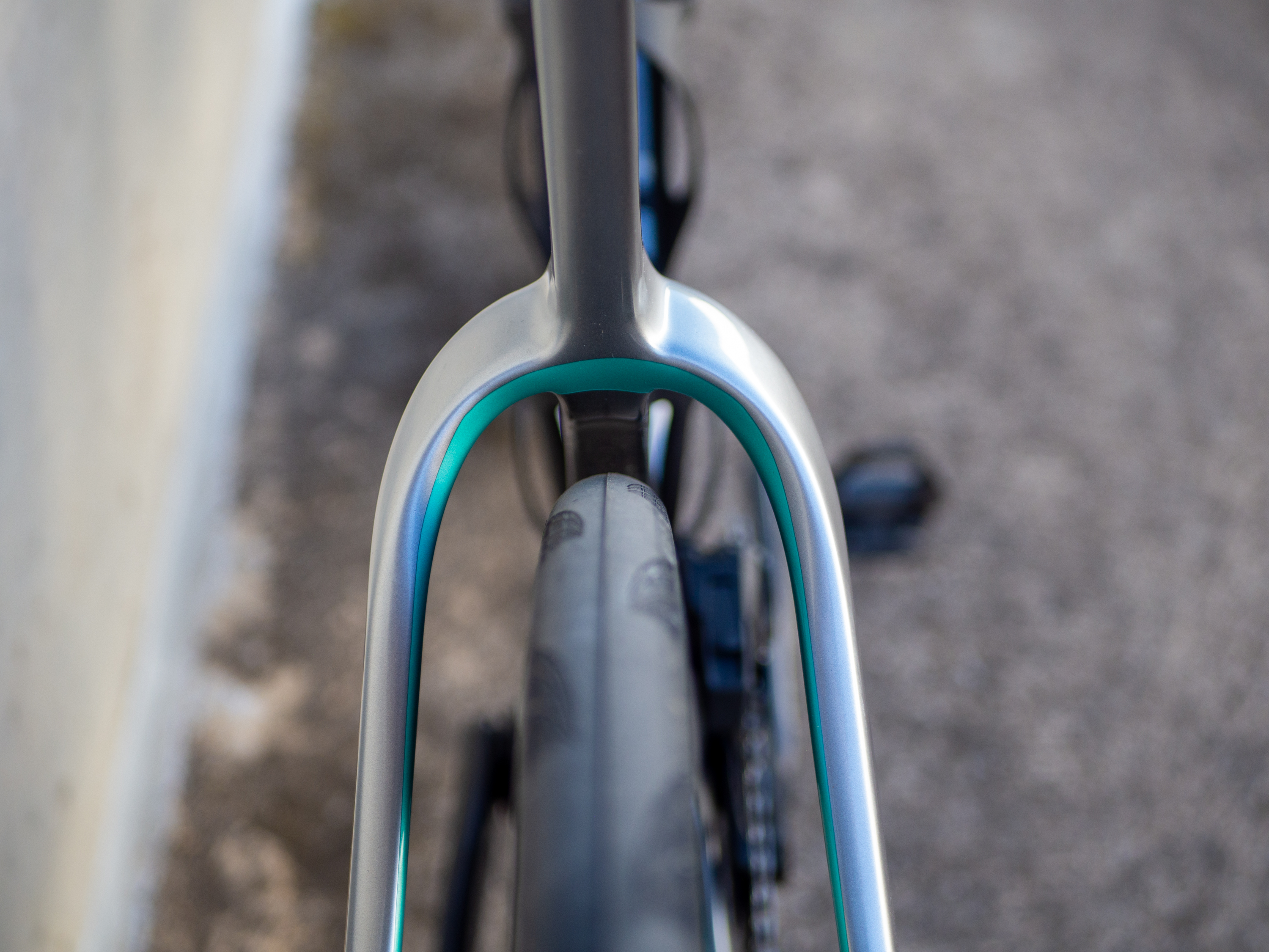 I'll touch on many of those details below, but in simple terms, the bike is designed with the modern racing position in mind; further forward, with shorter cranks, narrower bars and bigger tyres.