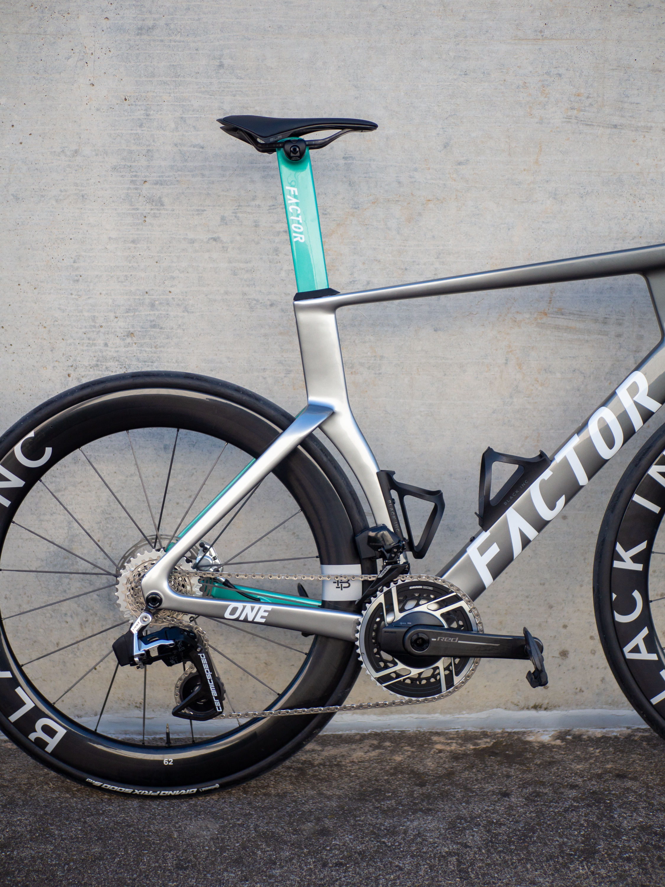 This position then plays nicely with the longer effective stems on the cockpits mentioned above, and is generally paired with shorter cranks, which often means higher saddles and further centre-of-gravity implications – and these can be specced on the One from purchase via Factor's website.