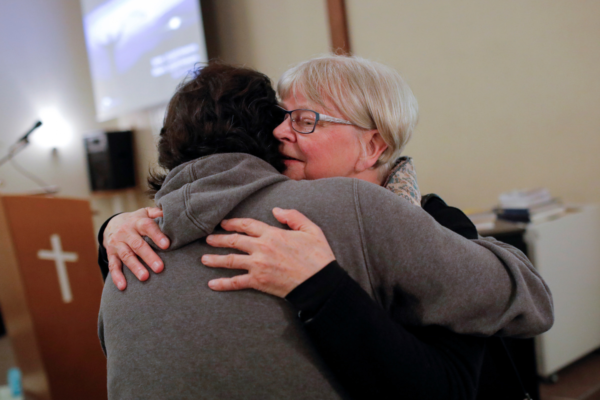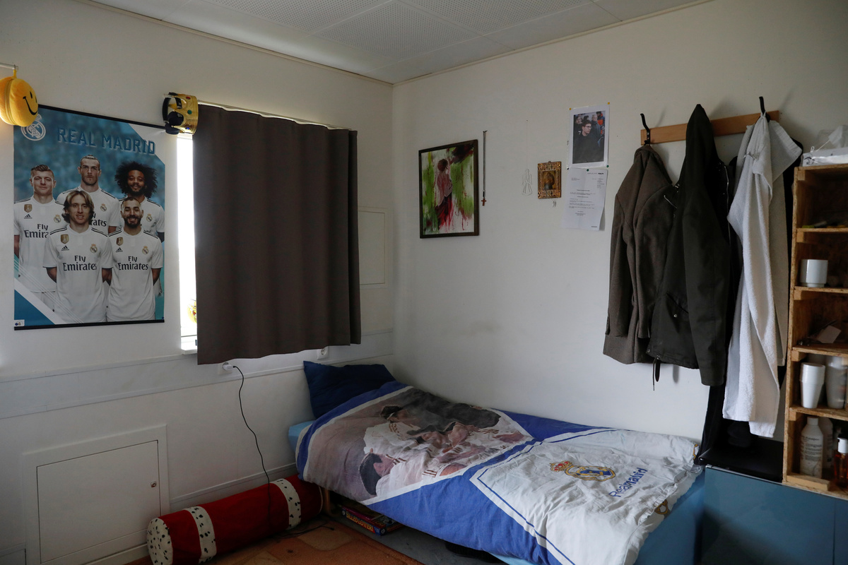 A resident climbs through a window at Kaershovedgaard, a former prison and now a departure centre for rejected asylum seekers in Jutland, Denmark, March 26, 2019. REUTERS/Andrew Kelly Inger Lis delivers a cake ahead of a weekly bible cafe meet-up that local parishioners and volunteers hold for residents of Kaershovedgaard, a former prison and now a departure centre for rejected asylum seekers in the town of Bording in Jutland, Denmark, March 28, 2019. REUTERS/Andrew Kelly A rug belonging to a resident from Iran hangs from a football goalpost to dry after it was washed at Kaershovedgaard, a former prison and now a departure centre for rejected asylum seekers in Jutland, Denmark, March 26, 2019. REUTERS/Andrew Kelly Residents share a meal provided by catering at Kaershovedgaard, a former prison and now a departure centre for rejected asylum seekers in Jutland, Denmark, March 26, 2019. The center provides 3 set meals a day and residents are forbidden from self catering. REUTERS/Andrew Kelly (2nd L-R) Peter Hansen, 30, Jamshid Rostami, 26 and Paman Farjolahi, 26, all Kurdish-Iranians and residents for over 2 years at Kaershovedgaard, a former prison and now a departure centre for rejected asylum seekers, sit in a bedroom at the center, in Jutland, Denmark, March 25, 2019. REUTERS/Andrew Kelly Residents play foosball at Kaershovedgaard, a former prison and now a departure centre for rejected asylum seekers in Jutland, Denmark, March 26, 2019. REUTERS/Andrew Kelly Narges Zahab, 40, who was a tailor in her native Iran for 15 years, pins a shirt at Kaershovedgaard, a former prison that is now a departure centre for rejected asylum seekers in Jutland, Denmark, March 27, 2019. Zahab, who is a resident at Kaershovedgaard, volunteers to repair clothes for fellow residents every Wednesday through a program run by the Red Cross. REUTERS/Andrew Kelly Sadiyo Hussein Omar, 30 from Somalia, runs on a treadmill at Kaershovedgaard, a former prison and now a departure centre for rejected asylum seekers in Jutland, Denmark, March 26, 2019. Sadiyo said running relieves her stress. REUTERS/Andrew Kelly Retired pastor Betty From Jensen embraces Houman Zahedi, 31 from Iran, who is a 3-year resident of Kaershovedgaard, at the end of a bible cafe meet-up that Jensen helps organise for residents of Kaershovedgaard in the town of Bording in Jutland, Denmark, March 28, 2019. Kaershovedgaard is a former prison and now a departure centre for rejected asylum seekers. REUTERS/Andrew Kelly Daniel Christensen, 27 from Iraq, reads his bible in his room at Kaershovedgaard, a former prison and now a departure centre for rejected asylum seekers where he has been a resident since March 2018, in Jutland, Denmark, March 25, 2019. Christensen used to be called Ali Adnan but prefers to be called Daniel Christensen since converting to Christianity. REUTERS/Andrew Kelly The view from a window at Kaershovedgaard, a former prison and now a departure centre for rejected asylum seekers in Jutland, Denmark, March 27, 2019. REUTERS/Andrew Kelly Daniel Cristiansen, 27, prays with residents of Kaershovedgaard and volunteers at a bible cafe meet-up in the town of Bording in Jutland, Denmark, March 28, 2019. Kaershovedgaard is a former prison and now a departure centre for rejected asylum seekers. REUTERS/Andrew Kelly Karim Azizi, 55, from Iran throws an orange in his room at Kaershovedgaard, a former prison and now a departure centre for rejected asylum seekers in Jutland, Denmark, March 26, 2019. REUTERS/Andrew Kelly Narges Zahab (L), 40, and Yasaman Paknejad, 36, both from Iran, pose for a photo inside the perimeter fence at Kaershovedgaard, a former prison and now a departure centre for rejected asylum seekers in Jutland, Denmark, March 25, 2019. REUTERS/Andrew Kelly Hoshang Rostami, 24, a Kurdish Iranian who lost part of his leg when stepping on a land mine aged 16 in Iran, prepares to attach a prosthetic limb in his bedroom at Kaershovedgaard, which was a former prison and is now a departure centre for rejected asylum seekers, in Jutland, Denmark, March 25, 2019. REUTERS/Andrew Kelly Vero Seryi, 45, from Nigeria, sorts through her prescription medicine at Kaershovedgaard, a former prison and now a departure centre for rejected asylum seekers in Jutland, Denmark, March 25, 2019. REUTERS/Andrew Kelly Vero Seryi, 45 from Nigeria, returns to her room in the women's block with her meal, one of three a day provided by the centre at Kaershovedgaard, a former prison and now a departure center for rejected asylum seekers in Jutland, Denmark, March 25, 2019. REUTERS/Andrew Kelly Safi Firoza, 66 from Afghanistan, whose son, daughter in-law and grandchildren were granted asylum, sits in her room at Kaershovedgaard, a former prison and now a departure centre for rejected asylum seekers in Jutland, Denmark, March 27, 2019. REUTERS/Andrew Kelly The G Block, part of an area designated to residents with a criminal record or mental health issues is seen at Kaershovedgaard, a former prison and now a departure centre for rejected asylum seekers in Jutland, Denmark, March 26, 2019. REUTERS/Andrew Kelly Real Madrid memorabilia is displayed in the room of Hoshang Rostami, which he shares with Jamshid Rostami (no relation), at Kaershovedgaard, a former prison and now a departure centre for rejected asylum seekers in Jutland, Denmark, March 26, 2019. REUTERS/Andrew Kelly Yasaman Paknejad, 36, an architect from Iran, sits in her room at Kaershovedgaard, a former prison and now a departure centre for rejected asylum seekers in Jutland, Denmark, March 25, 2019. REUTERS/Andrew Kelly Hoshang Rostami, 24 from Iran, walks through Kaershovedgaard, a former prison and now a departure centre for rejected asylum seekers in Jutland, Denmark, March 26, 2019. REUTERS/Andrew Kelly Karim Azizi, 55, a Kurdish Iranian, poses for a photograph in his bedroom as he shows his injuries, at Kaershovedgaard, a former prison and now a departure centre for rejected asylum seekers in Jutlan