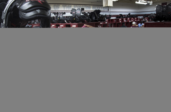 Small memorials dot the team's locker room. "Long live #11" appears in fading marker on whiteboards and doors. Jordan's locker sits untouched, except for little "RIP" notes placed around his size 10 { Adidas.