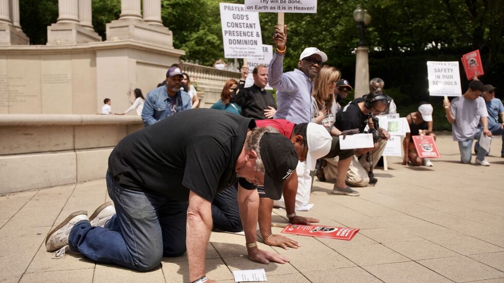 A resounding chant broke out in Millennium Park’s Wrigley Square following New Landmark Missionary Baptist Church Pastor Cy Fields’ prayer: “Chicago belongs to God.”