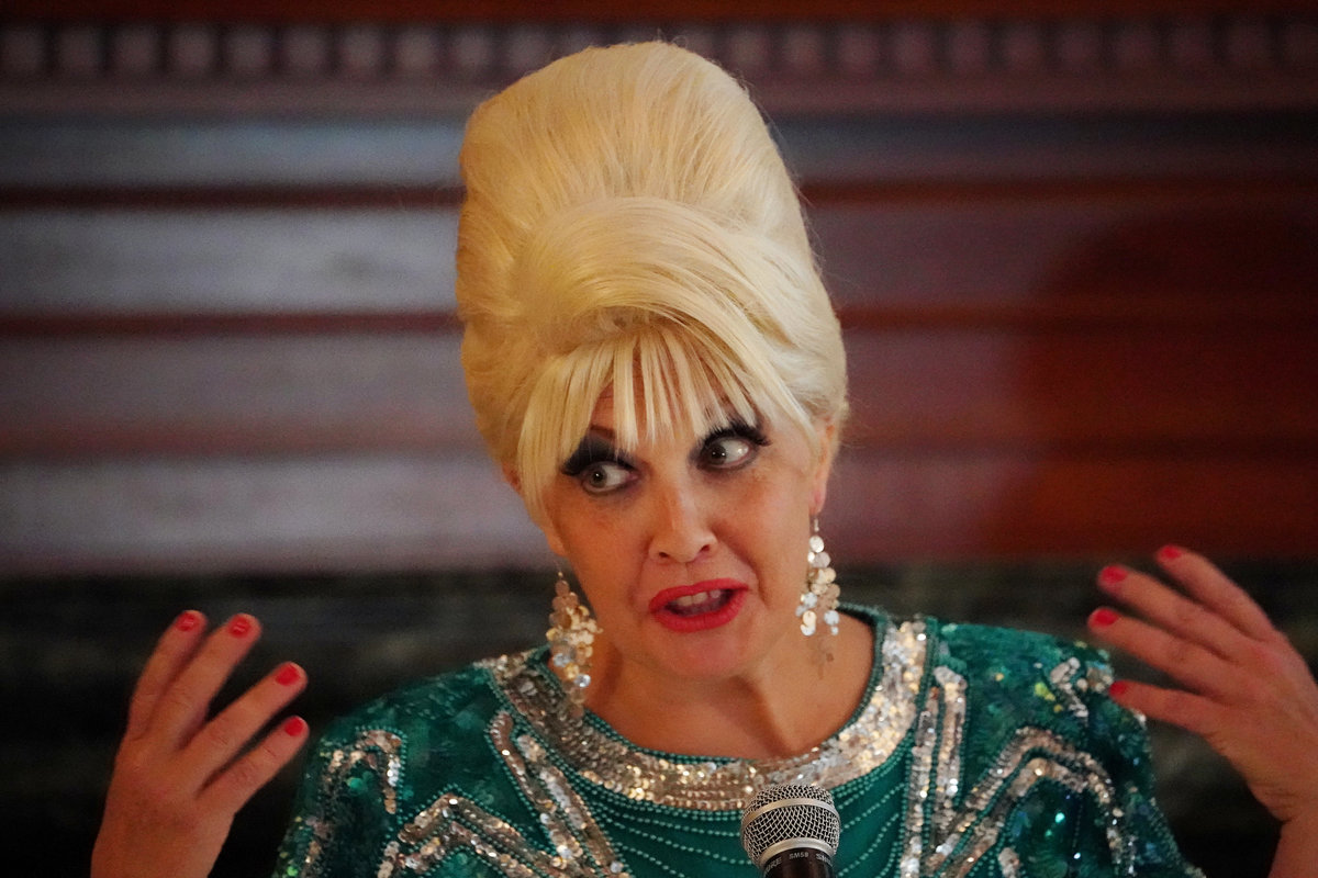 Gershon, who has also acted as a kinky lesbian in "Bound" and Donatella Versace, sister of assassinated designer Gianni Versace, was a dead ringer for Mrs. Trump at the news conference.