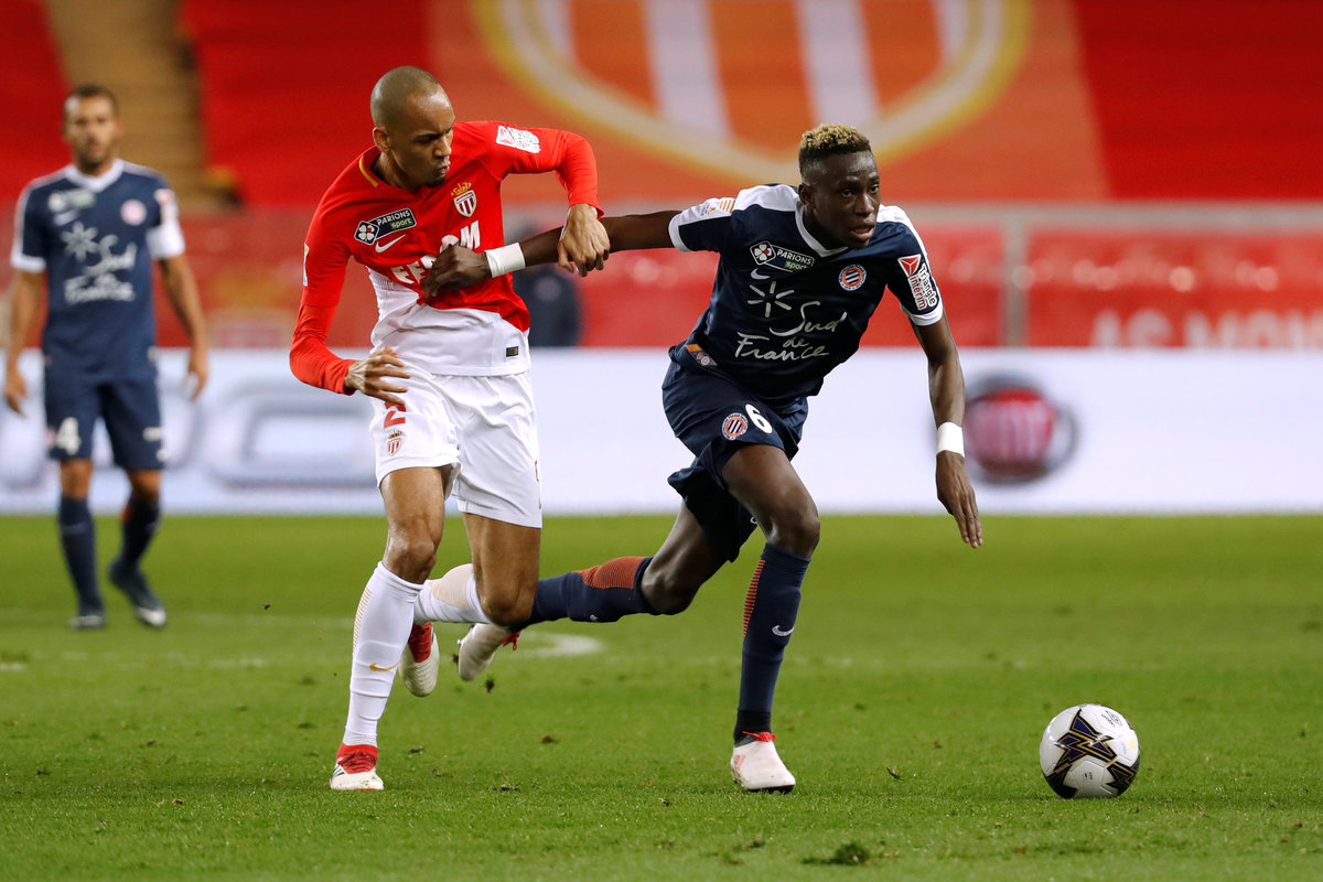 Soccer Football - Coupe de la Ligue Semi Final - AS Monaco vs Montpellier - Stade Louis II, Monaco - January 31, 2018 Monaco's Joao Moutinho in action with Montpellier’s Giovanni Sio REUTERS/Eric Gaillard