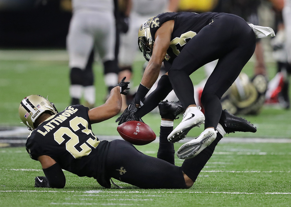 The Saints put their stamp on this game early as they broke open a tight game just before halftime, intercepting a pass with less than a minute to go and turning that into a 54-yard touchdown pass and 13-0 lead.
