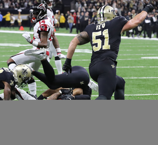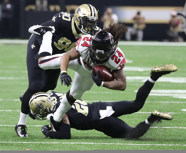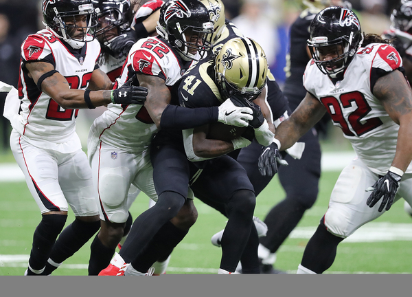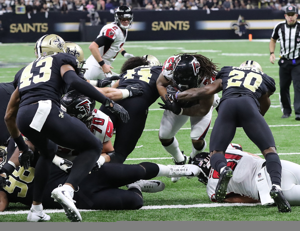 The Saints (11-4) leaned on running backs Alvin Kamara and Mark Ingram who nearly doubled the output of the Falcons' running back duo of Freeman and Tevin Coleman _ 156 total yards from scrimmage to 108.