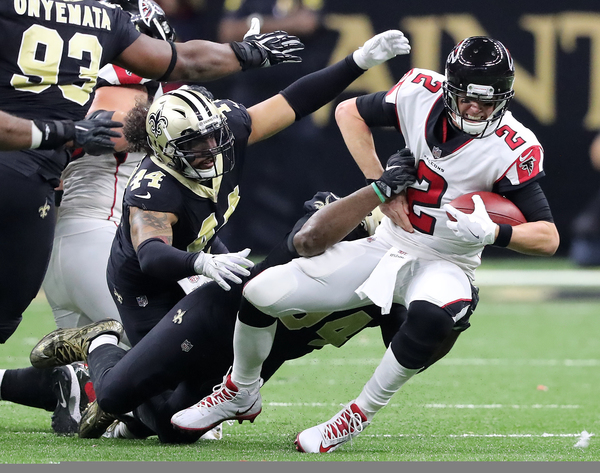 Ryan and his crew had six first-half penalties, three failed red-zone trips, two of them inside the 5-yard line, and a key fumble by running back Devonta Freeman at the Saints' 2-yard line early in the third quarter.