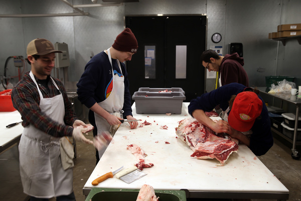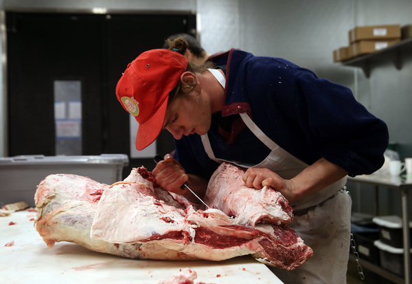 At Butcher & Larder, beef prices aren't subject to the fluctuations of the commodity market. All of the beef comes from La Pryor Farms in Ottawa, Ill., and generally costs more because it's produced locally, butchered fresh and marketed as being higher in quality.