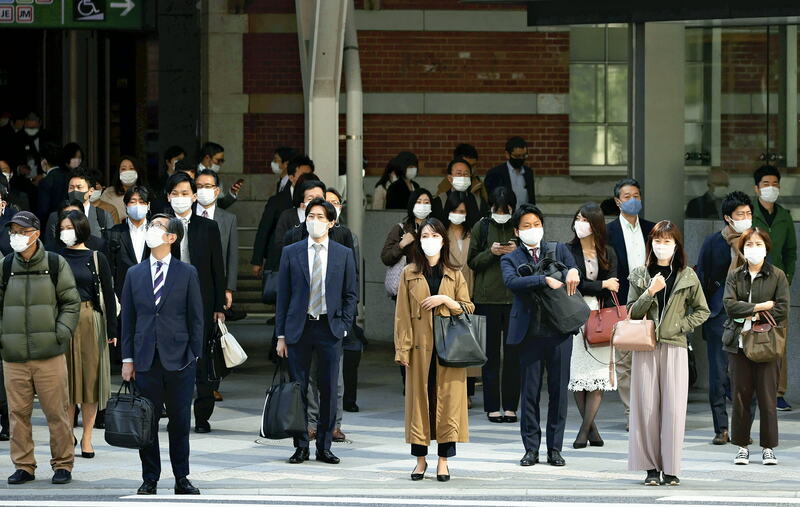 There were more people seen at Tokyo Station than on April 7, 2020, when the first state of emergency was declared for seven prefectures including Tokyo. The state of emergency was extended to cover the entire nation on April 16. It was lifted in stages through May 25, 2020.