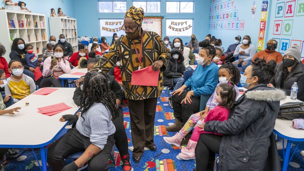 A few dozen kids and their parents gathered at a children's museum Monday afternoon in Calumet Heights on the South Side to commemorate and learn about the first day of Kwanzaa.