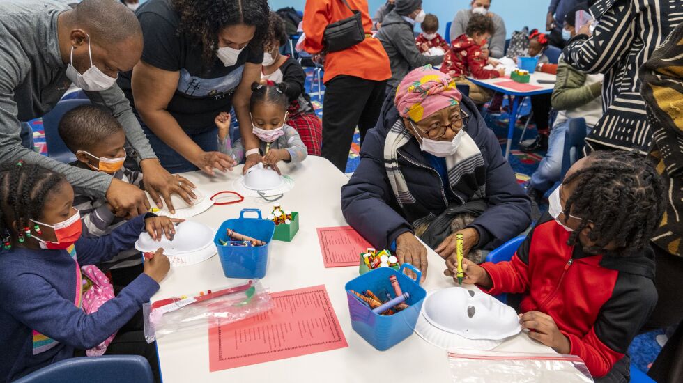 Children sat around tables listening to lessons by Margaret Galloway, a docent at the Bronzeville Children's Museum at 9301 S. Stony Island Ave. The kids sang songs, shared how they would change the world and used crayons to decorate masks symbolizing the holiday's seven principles.