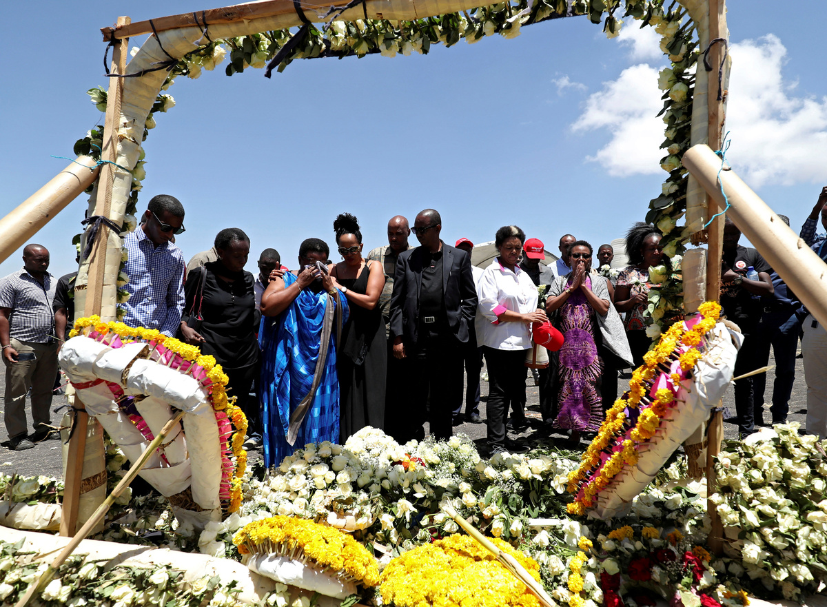 Families from countries including Canada, the United States, Ethiopia, Kenya, Uganda, Italy and France attended the ceremony at the crash site, about a three-hour drive from the capital, Addis Ababa.