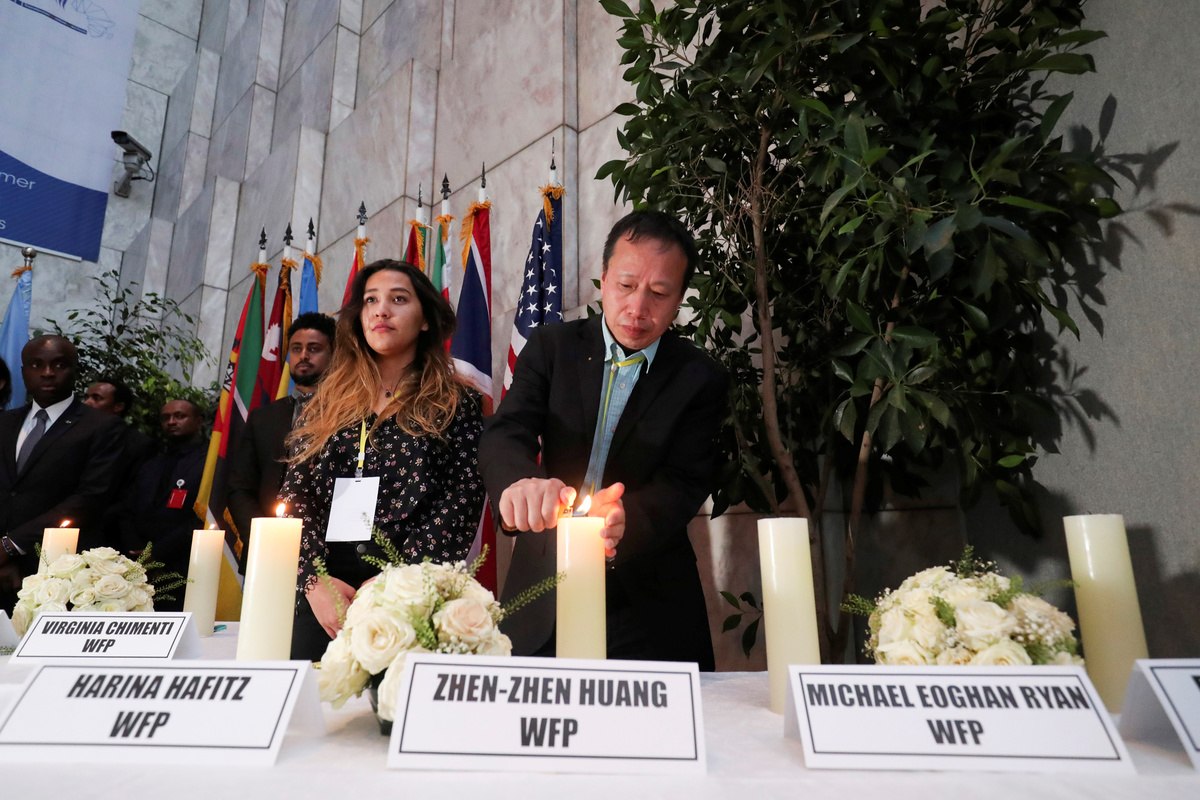 At the United Nations offices in Addis Ababa, friends and families lit candles in front of wreaths in honour of loved ones and colleagues.