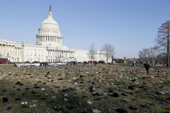 Thousands of pairs of shoes have been laid on the lawn outside the US Capitol in Washington DC this week in protest at the huge scale of children killed by gun violence in America.