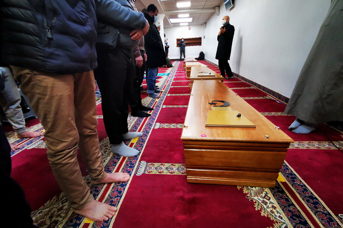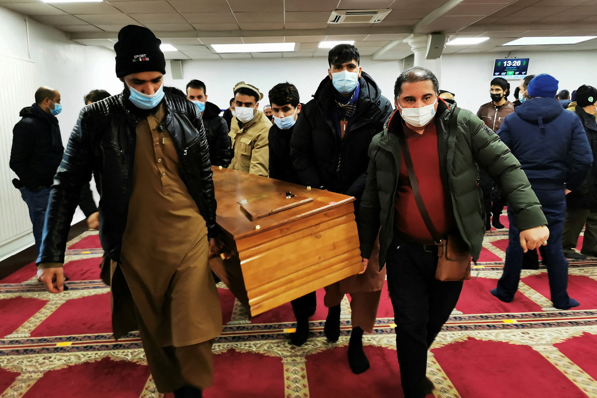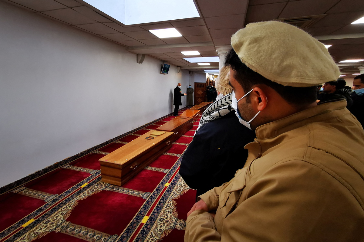 The coffins were borne to the Al Imane Mosque in the northern French city of Lille, where around 100 people, many of them Afghans from around the region, gathered for the recital of the Islamic funeral prayer.