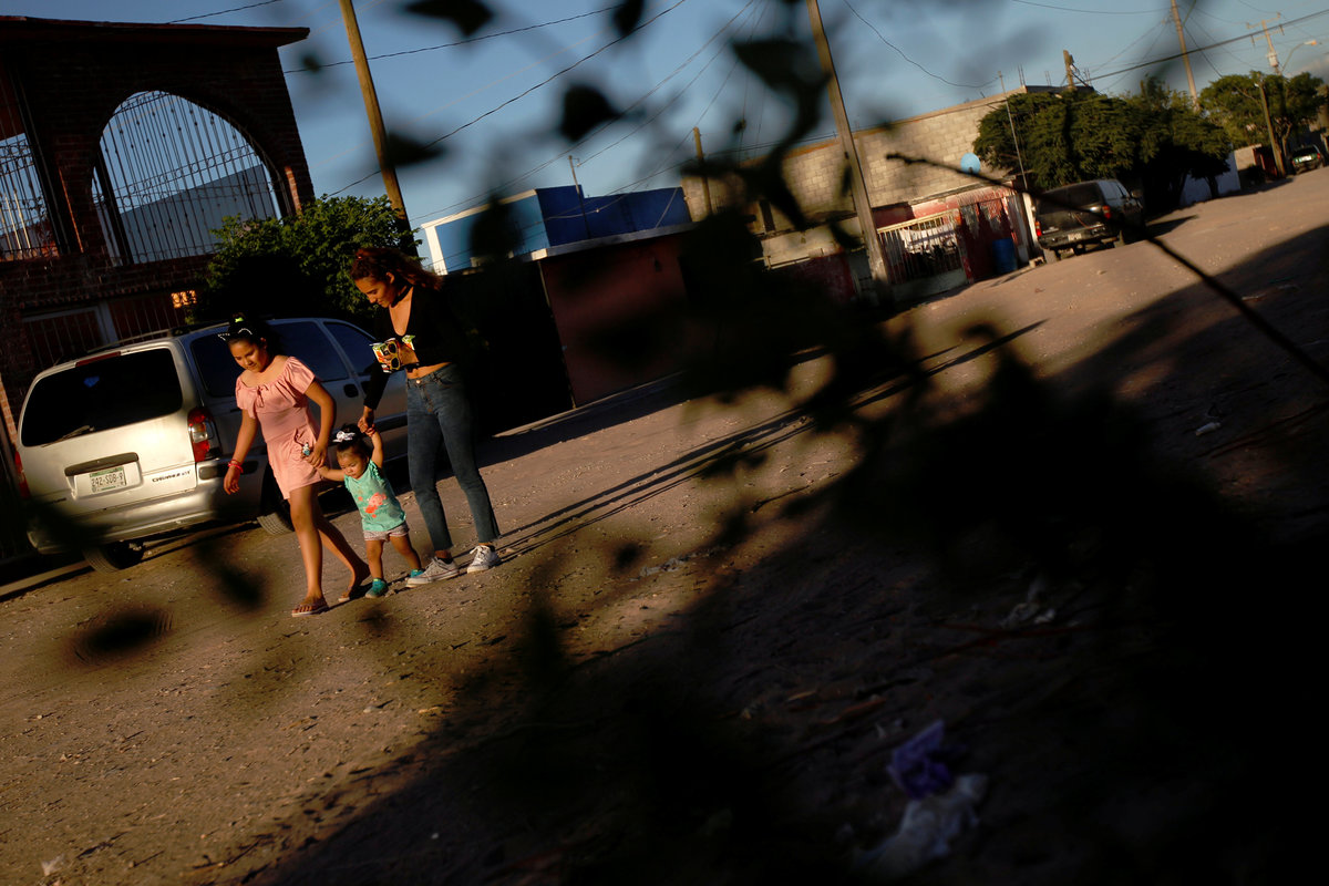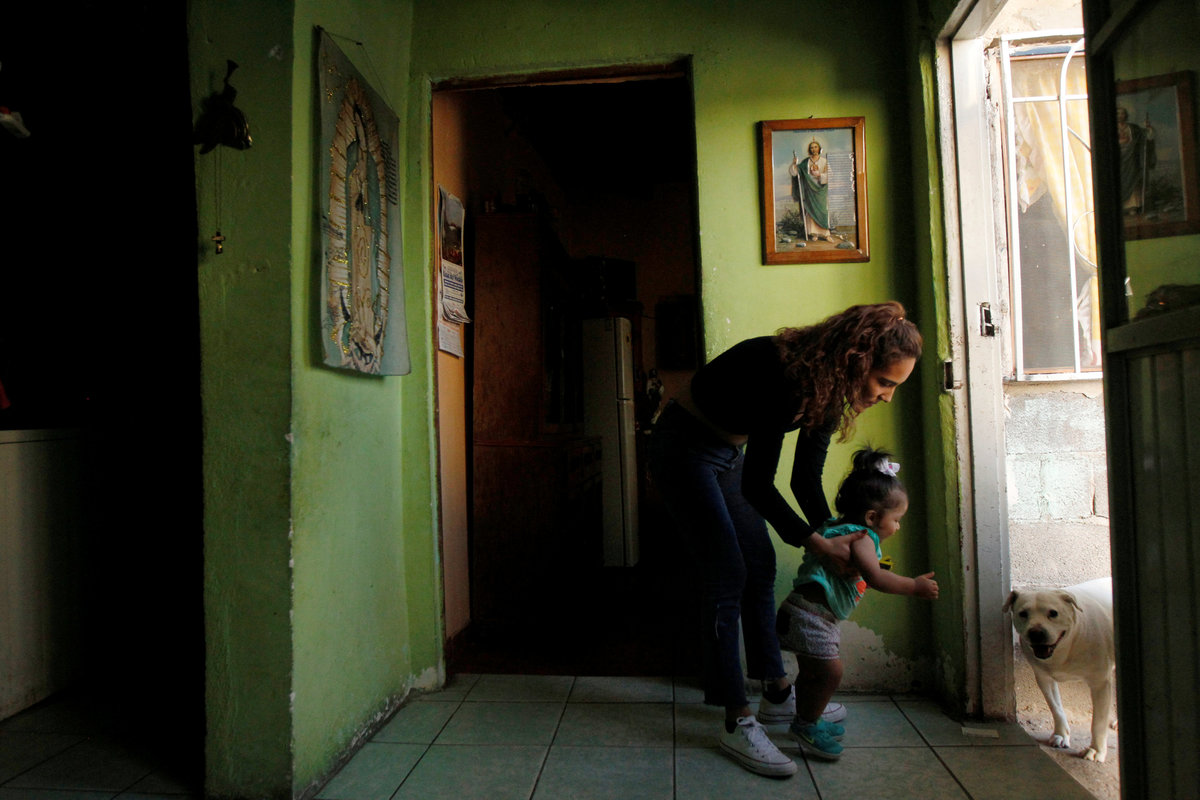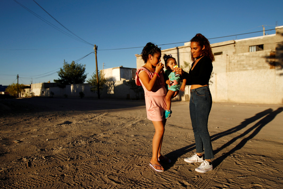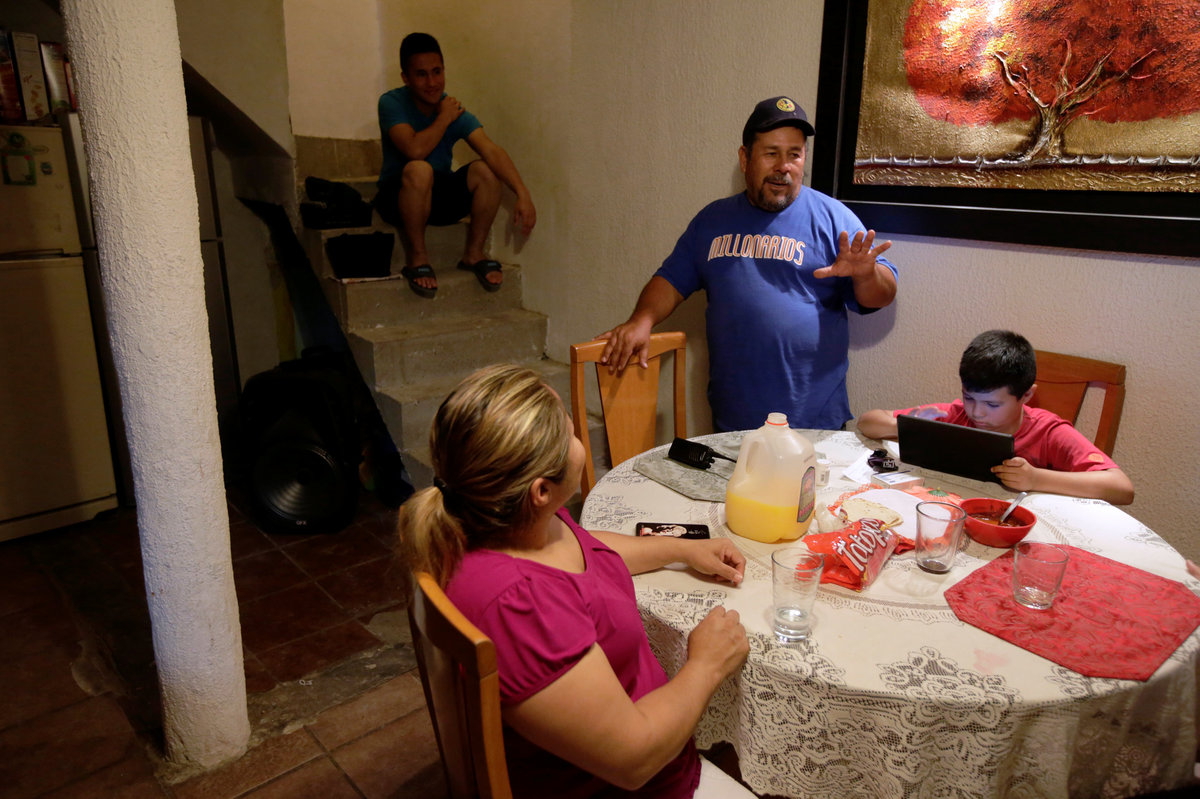 Marcelino Pizarro holds his baby son Matias in the living room of his home in El Paso, Texas, U.S., May 9, 2018. REUTERS/Lucas JacksonMarcelino Pizarro and his wife, Alejandra Aguilar leave a church service, with their children, in El Paso, Texas, U.S., May 9, 2018. REUTERS/Lucas JacksonCesar Pizarro, rides his bike in the backyard of the family home in El Paso, Texas, U.S., May 9, 2018. REUTERS/Lucas JacksonMarcelino Pizarro lets his baby son Matias play with his hand to quiet him during a church service near their home in El Paso, Texas, U.S., May 9, 2018. REUTERS/Lucas JacksonMarcelino Pizarro prays during a church service in El Paso, Texas, U.S., May 9, 2018. REUTERS/Lucas JacksonMarcelino Pizarro reaches to touch his baby son, Matias, during a church service near their home in El Paso, Texas, U.S., May 9, 2018. REUTERS/Lucas JacksonMarcelino Pizarro arrives with his family to attend a church service near their home in El Paso, Texas, U.S., May 9, 2018. REUTERS/Lucas JacksonA neighbourhood is seen from a hill in Ciudad Juarez, Mexico May 10, 2018. REUTERS/Jose Luis GonzalezCars are parked outside the house of the parents of brothers Marcelino Pizarro, who lives in El Paso, U.S., and Ramon, who lives in Ciudad Juarez, in Mexico May 8, 2018. REUTERS/Jose Luis GonzalezDenisse Pizarro (L) and her sister Fatima Paola Pizarro (R) hold Aitana Pizarro, Fatima Paola's daughter, while walking back from a neighbourhood store, in Ciudad Juarez, Mexico May 8, 2018. Fatima and Denisse are the daughters of Marcelino Pizarro who lives in El Paso, U.S. REUTERS/Jose Luis GonzalezFatima Paola Pizarro (L), holds her daughter Aitana Pizarro at her grandparent's home in Ciudad Juarez, Mexico May 8, 2018. Fatima is the daughter of Marcelino Pizarro who lives in El Paso, U.S. REUTERS/Jose Luis GonzalezFatima Paola Pizarro holds her daughter Aitana Pizarro in Ciudad Juarez, Mexico May 8, 2018. Fatima Paola is the daughter of Marcelino Pizarro who lives in El Paso, U.S. REUTERS/Jose Luis GonzalezRamon Pizarro stops with his taxi next to a burned car in an abandoned neighbourhood in Ciudad Juarez, Mexico May 8, 2018. Ramon is the brother of Marcelino Pizarro, who lives in El Paso, U.S. REUTERS/Jose Luis GonzalezRamon Pizarro poses for a photo with his taxi in an abandoned neighbourhood in Ciudad Juarez, Mexico May 8, 2018. Ramon is the brother of Marcelino Pizarro, who lives in El Paso, U.S. REUTERS/Jose Luis GonzalezDenisse Pizarro (L) and her sister Fatima Paola Pizarro (R) walk with Aitana Pizarro, Fatima Paola's daughter, on their way back from a neighbourhood store, in Ciudad Juarez, Mexico May 8, 2018. REUTERS/Jose Luis GonzalezDenisse Pizarro (L) and her sister Fatima Paola Pizarro sit together at their grandparent's home in Ciudad Juarez, Mexico May 8, 2018. REUTERS/Jose Luis GonzalezEduardo Pizarro (L) sits on the staircase listening to his parents Ramon Pizarro (C) and Ana Lilia Lozano (front) as their grandson Alexis Emiliano looks at a tablet, at their home in Ciudad Juarez, Mexico May 10, 2018. REUTERS/Jose Luis GonzalezDenisse Pizarro (L) and her sister Fatima Paola Pizarro sit near an image of Mexico's patron saint Virgin of Guadalupe at their grandparent's home in Ciudad Juarez, Mexico May 8, 2018. REUTERS/Jose Luis Gonzalez
