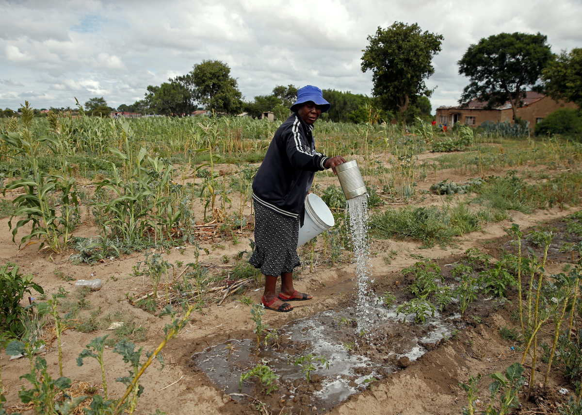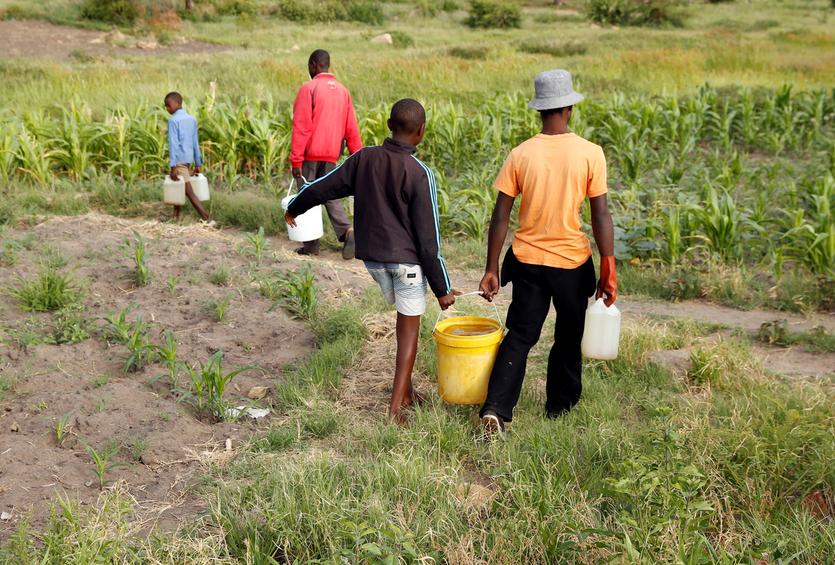 In Zimbabwe's second city Bulawayo, Abraham Kavalanjila and his two sons give up waiting for the water to come back on and trek out into the maize fields to draw on an open well.