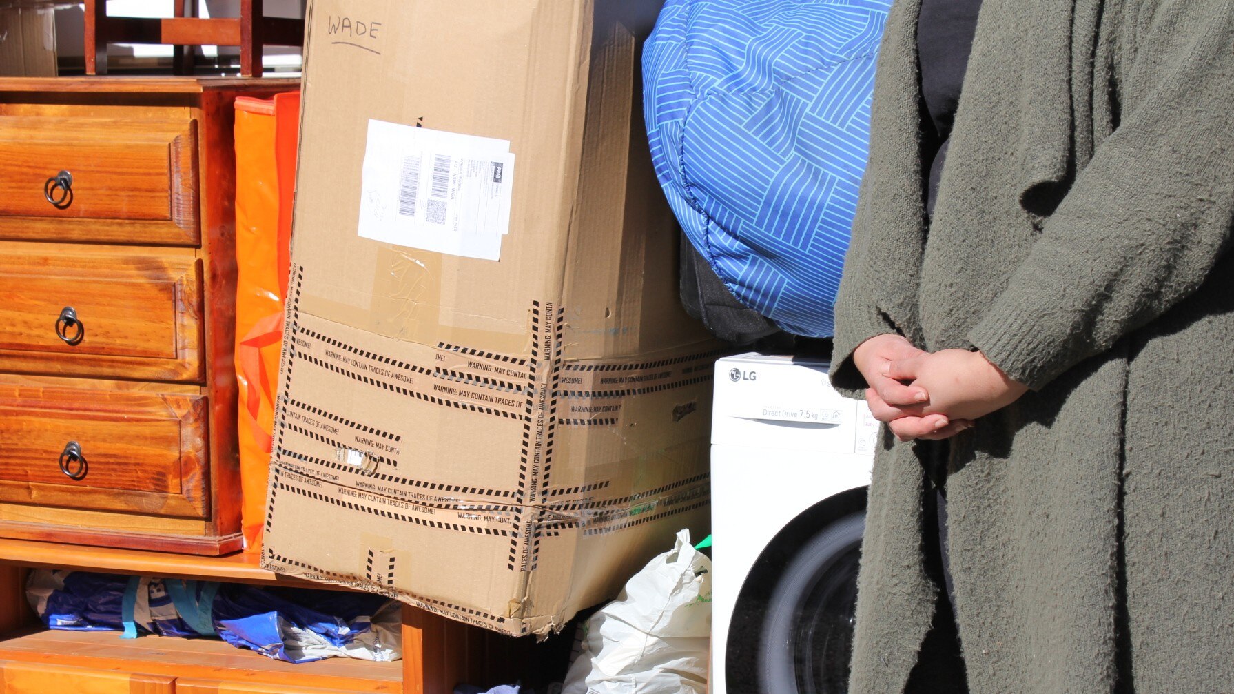 Unable to find a rental by their move-out date, Ms Arzidin and her family are now living in a friend's backroom with their belongings stored in their shed.