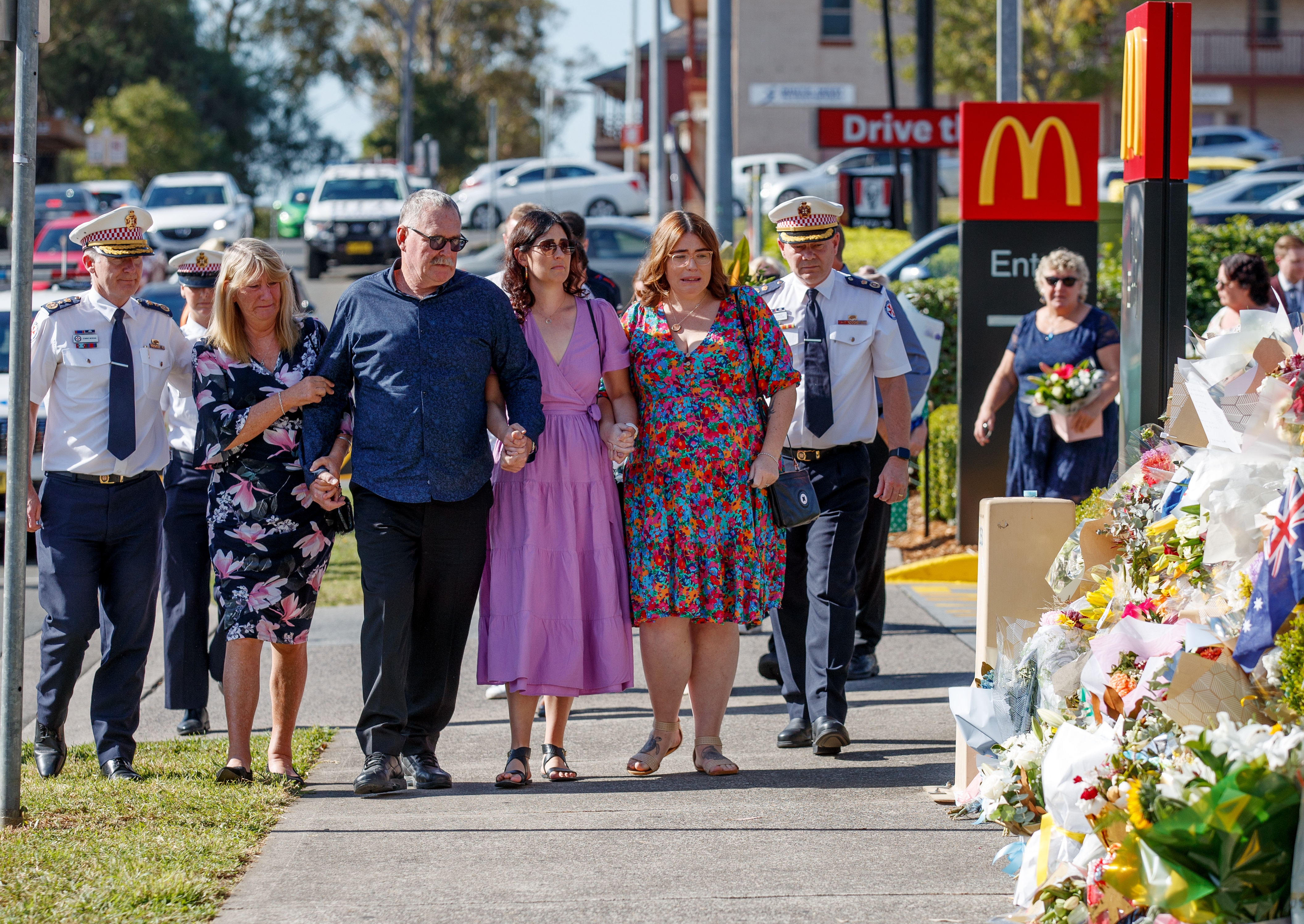 The family arrived at Campbelltown together, by bus, and supported each other as they laid flowers at the scene.